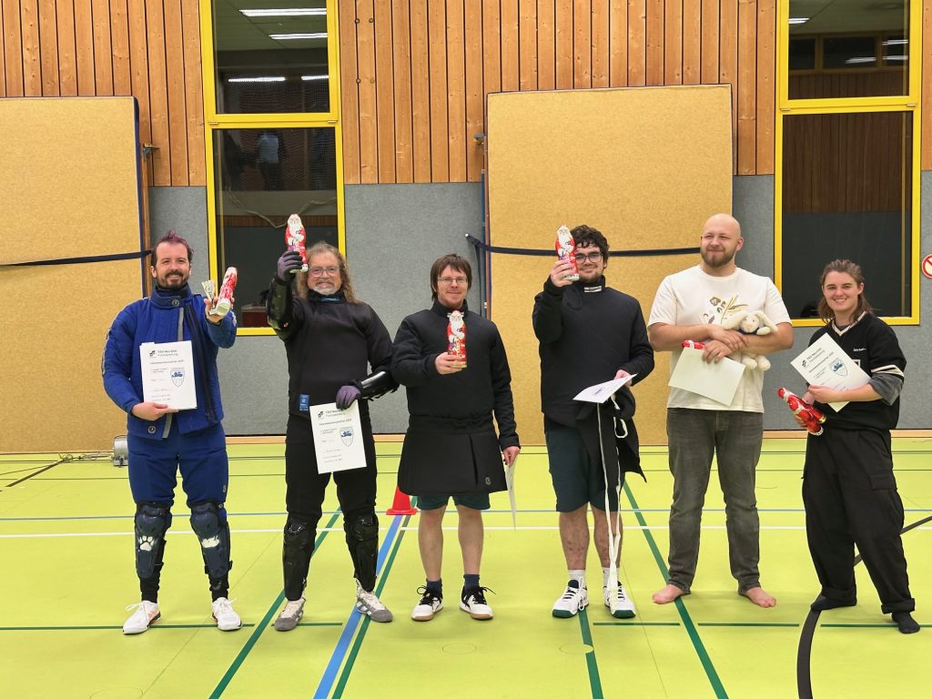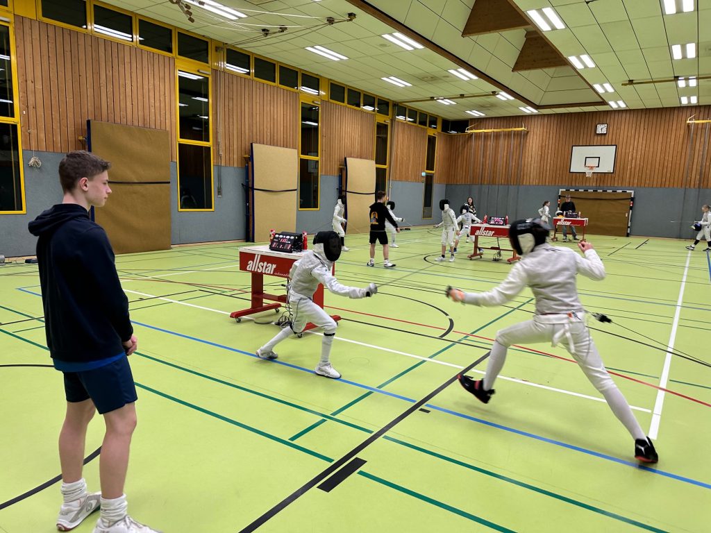 Eingebettet ist die Vereinsmeisterschaft traditionell in die Weihnachtsfeier der Fechtabteilung. In den Florett Jugend-Altersklassen (ab U13) bis hinauf zu den Senioren gab es spannende Gefechte. Serien-Sieger Lukas Hörger (regelmäßig im Training – also zweimal im Jahr aus beruflichen Gründen) musste sich diesmal knapp und unter einem Lächeln geschlagen geben. Dritter bei den Männern wurde Joshua Kießling, der mehr an seinem Abitur schrauben darf als im Waffenraum und in der Fechthalle.